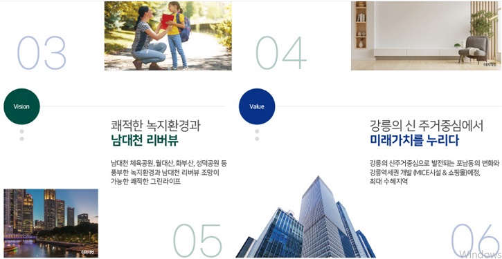 걸어서 학교와 학원을 오고 갈 수 있는 강릉의 예비 학군지이고, 선호도가 높은 84 타입에 4bay 구조로 구성되어 있습니다.