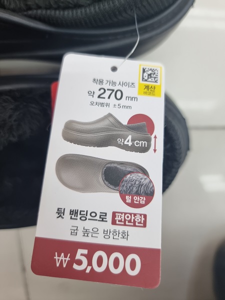 신발은 거의 5,000원의 가격이었습니다. 만원도 하지 않는 가격에 겨울 신발이라니 놀랍습니다.