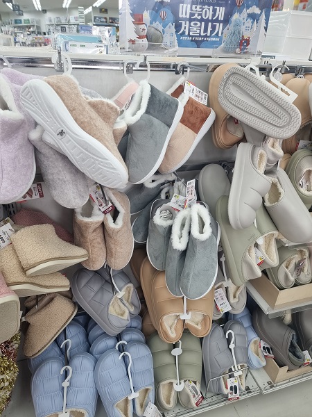 털실내화, 방한화, 털신발들이 다이소 매장 한군데에 모여있지는 않았습니다. 1층과 2층에 분산되어 있었고, 1층에서도 나눠져 있으니 이곳저곳 잘 찾아 보셔서 마음에 드시는 제품 찾으시길 바랍니다.