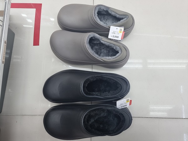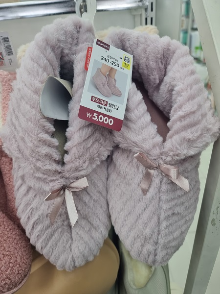 이 다이소 털신발도 5,000원이었습니다. 뒤에 나오는 신발들도 거의 5,000원의 가격입니다.