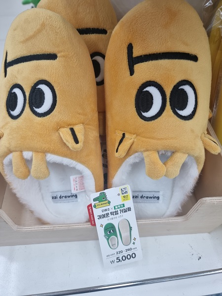 이 제품은 찌작가와 다이소의 콜라보 실내화입니다. 작가의 캐릭터 디자인이 귀엽게 들어간 겨울실내화도 커플로 신으면 더욱 귀엽겠습니다. 집들이 선물로도 적당해 보입니다.