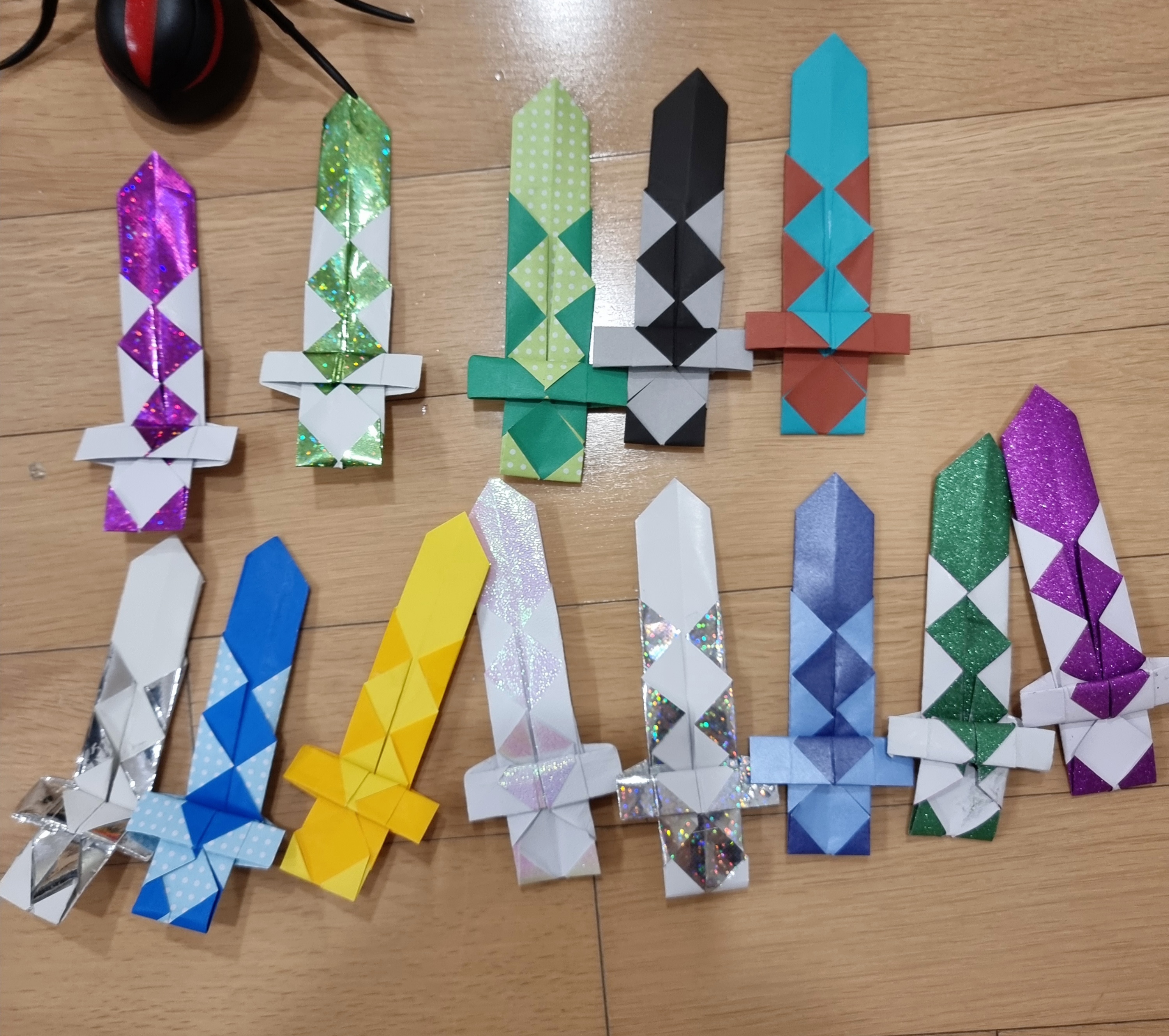 유튜브에서 쉬우면서도 보기엔 알록달록 예쁜걸로 골라서 여러색으로 접어 놨어요.